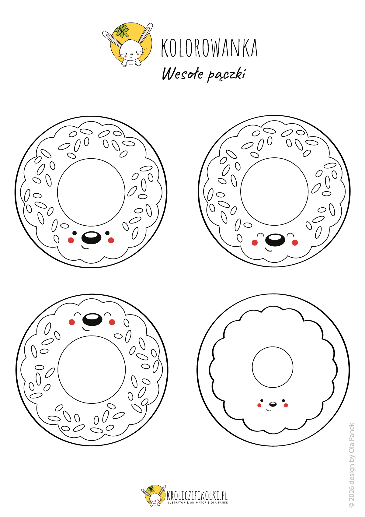 Uwaga: grafiki udostępniam tylko do użytku własnego. Pliki nie są przeznaczone do użytku komercyjnego. Jeśli wykonasz projekt, który tutaj zamieściłam to sprawisz mi ogromną radość. Myśl o tym, że zagościł w Waszym domu / w przedszkolu / szkole powoduje u mnie szeroki uśmiech! Dla takich radości właśnie tworzę i to mnie napędza do projektowania kolejnych grafik 🙂 Możesz również podzielić się zdjęciem projektu na „króliczej” stronie na facebooku.